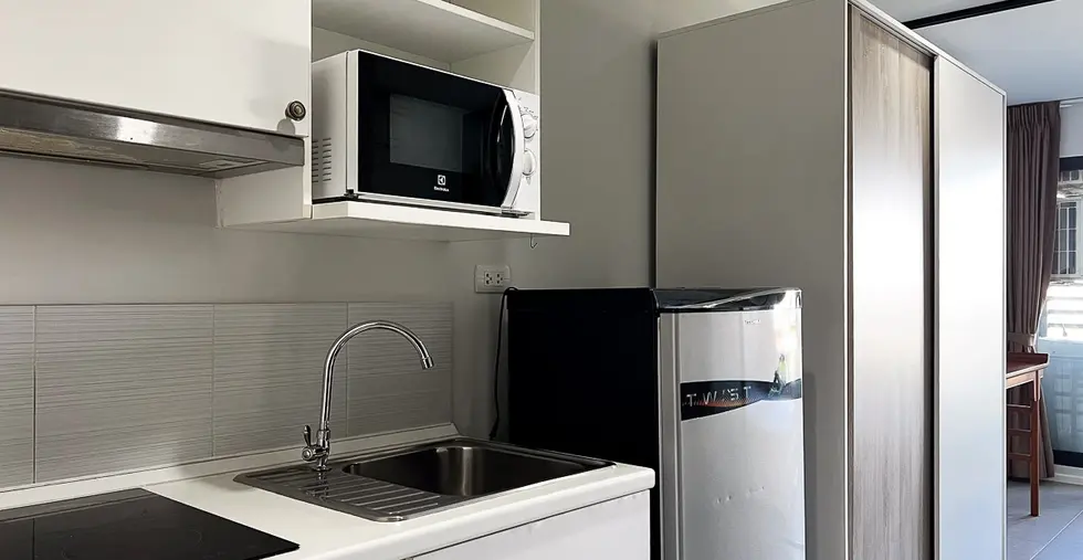 เครื่องใช้ไฟฟ้าครบ: เครื่องซักผ้า, ไมโครเวฟ, เตาไฟฟ้า, ตู้เย็น, ทีวี
